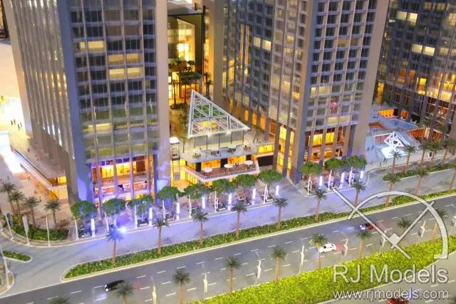 本次阿聯(lián)酋塔樓商業(yè)園模型有兩大亮點(diǎn):